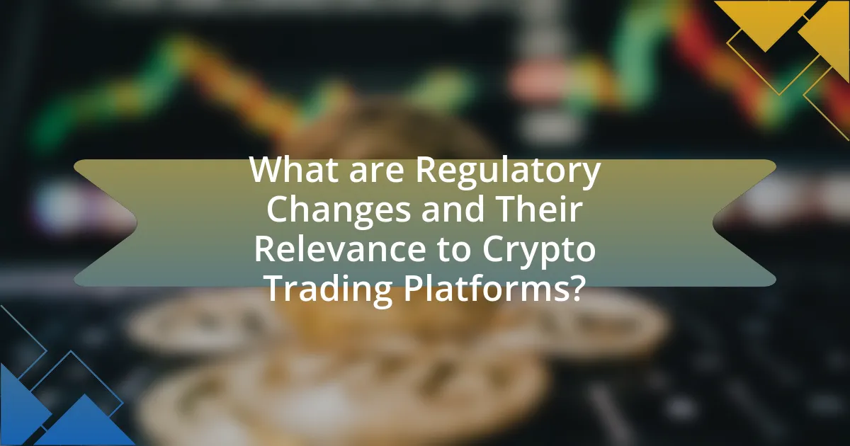 Regulatory changes refer to modifications in laws and guidelines that govern financial markets, including the cryptocurrency sector. These changes are highly relevant to crypto trading platforms as they dictate operational compliance, affect market access, and influence user trust. For instance, the implementation of the European Union’s Markets in Crypto-Assets (MiCA) regulation aims to create a unified regulatory framework for cryptocurrencies, which can enhance legitimacy and security for trading platforms operating within the EU. Additionally, regulatory scrutiny can lead to increased transparency and consumer protection, as seen in the U.S. with the SEC’s enforcement actions against fraudulent crypto schemes. Thus, regulatory changes significantly shape the operational landscape and strategic decisions of crypto trading platforms.
